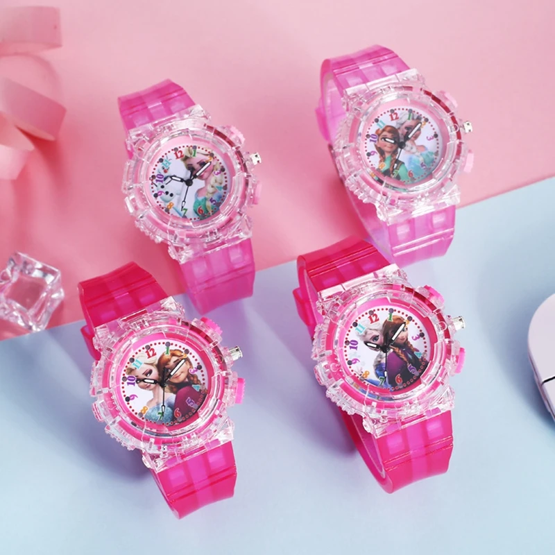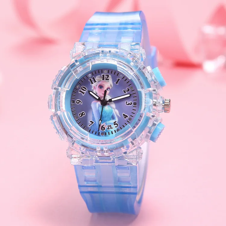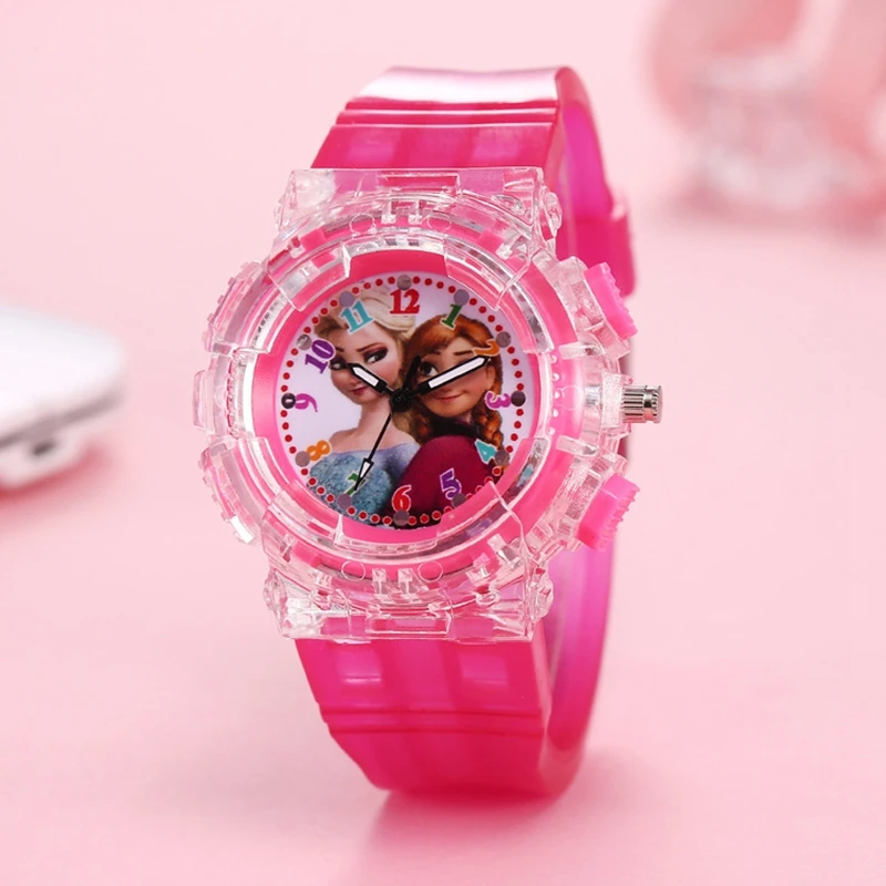 LED Flash Frozen Princess Elsa Children Cartoon Watches Spiderman Colorful Light Boys Watch Girls Kids Clock Wristwatch
